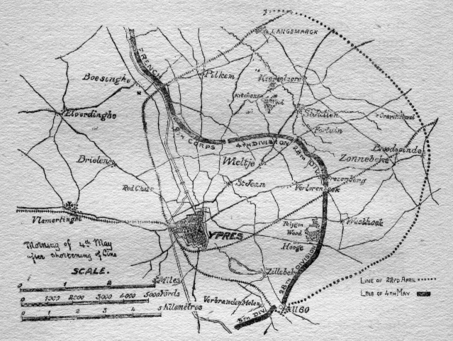 After Neuve Chapelle and the Second Battle of Ypres there ensued a quiet period, devoted to placing the old fortress prison in apple-pie order. Rooms and passages that had been dingy glowed under whitewash, paint and active scrubbing, and the unit made a reputation for itself for thoroughness and efficiency.